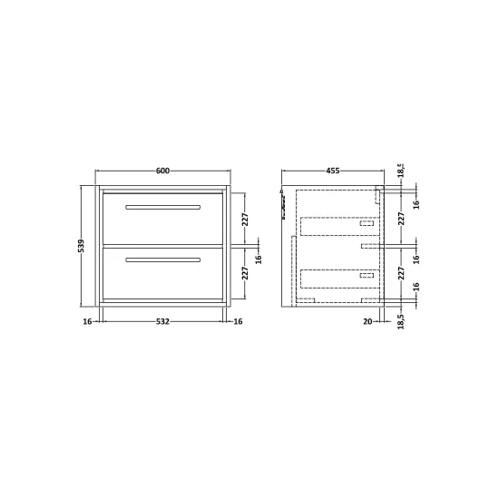Lille 600mm Wall Hung 2 Drawer Unit (455 Deep)