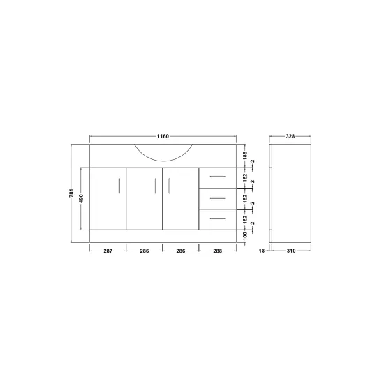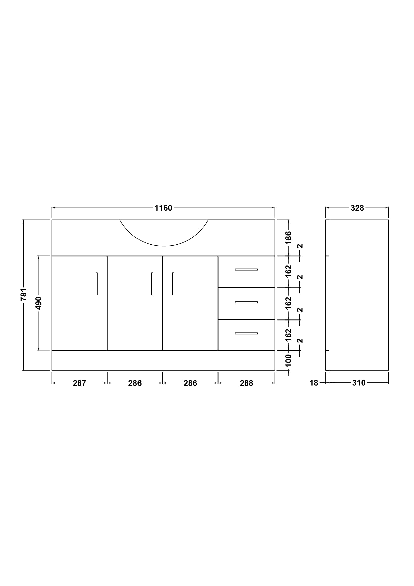 Mayford Floor Standing 3 Door 2 Drawer Vanity Unit 1250mm
