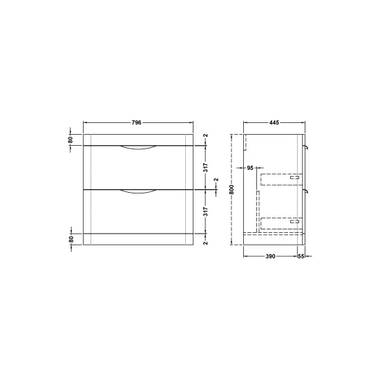 Parade Floor Standing 2 Drawer Basin Unit 800mm