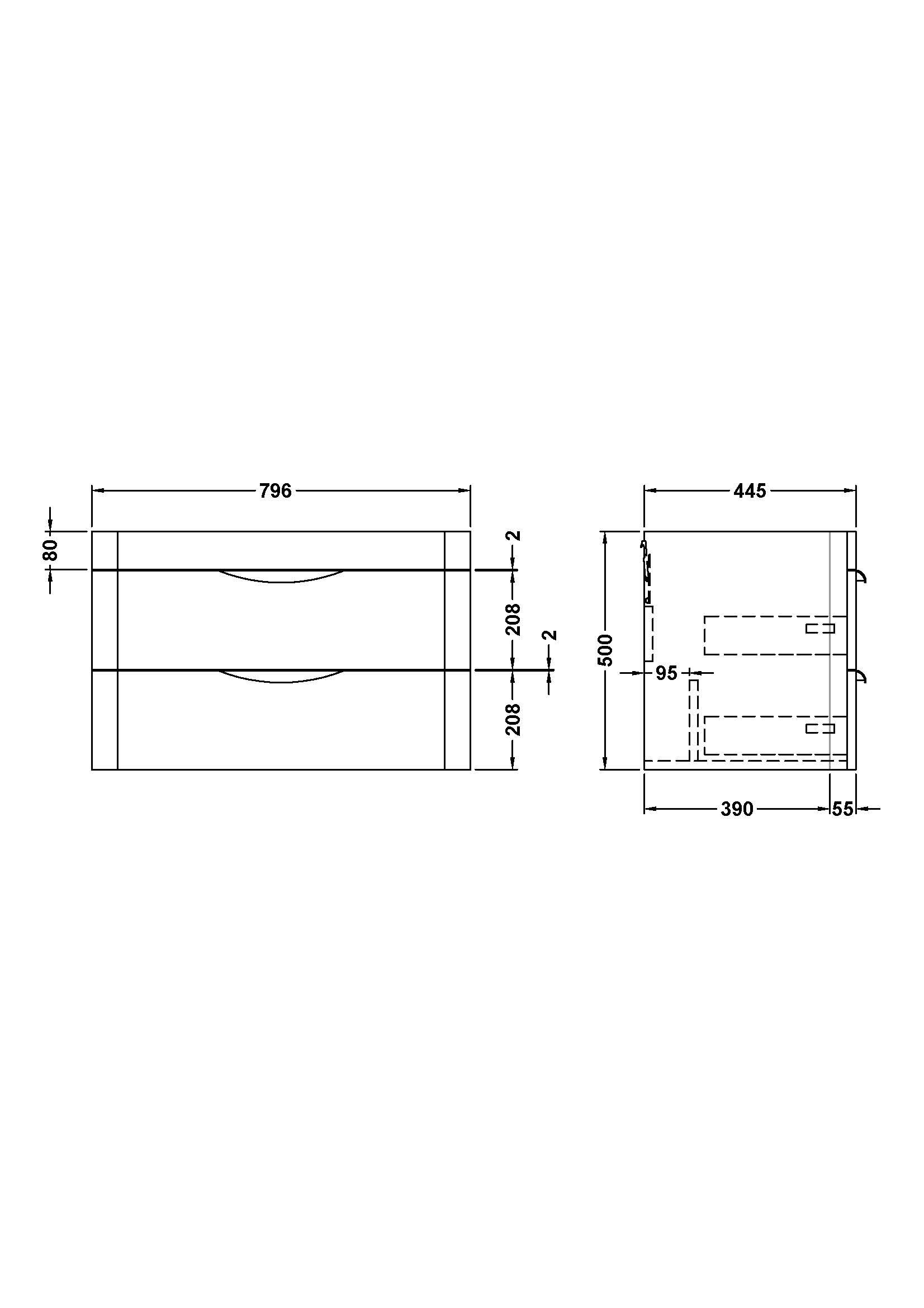 Parade Wall Hung 2 Drawer Basin Unit 800mm