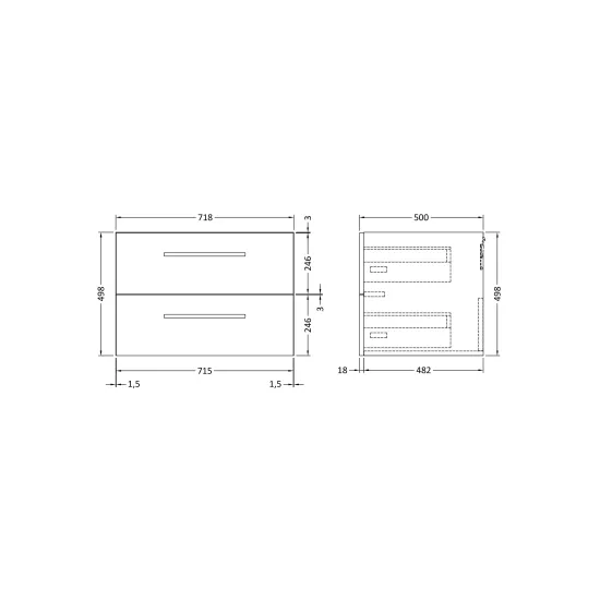 Quartet Wall Hung 2 Drawer Vanity Unit 718mm