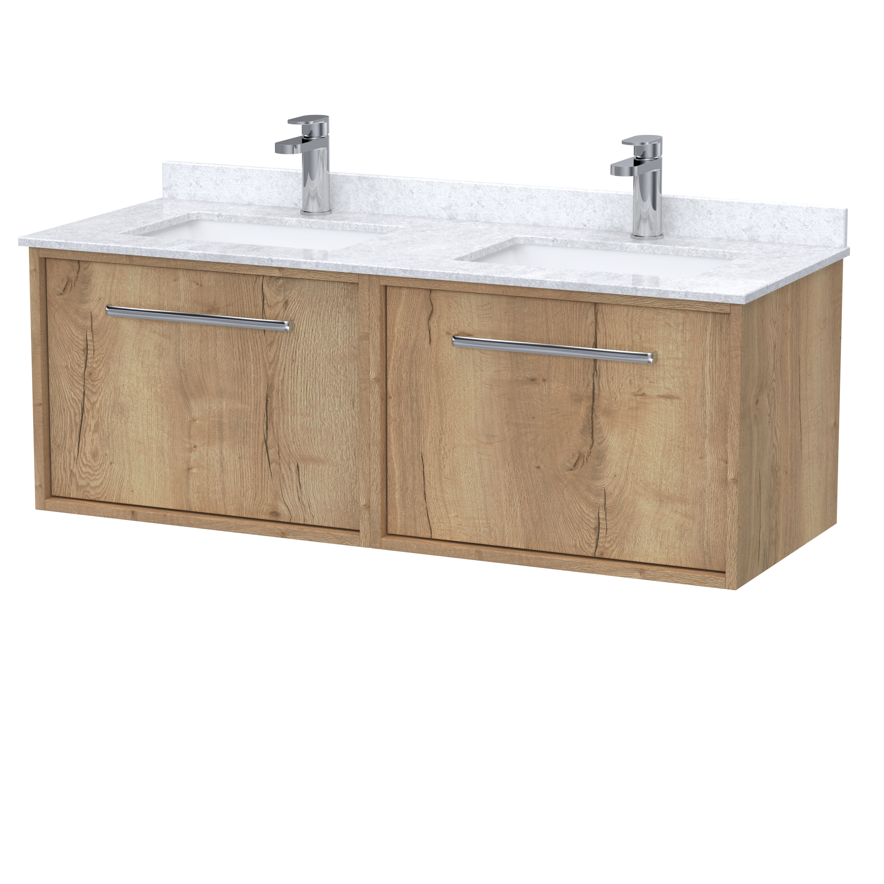 nuie Lux Roseburn 1200mm Wall Hung 2 Drawer Unit and Marble Top Basin - Autumn Oak