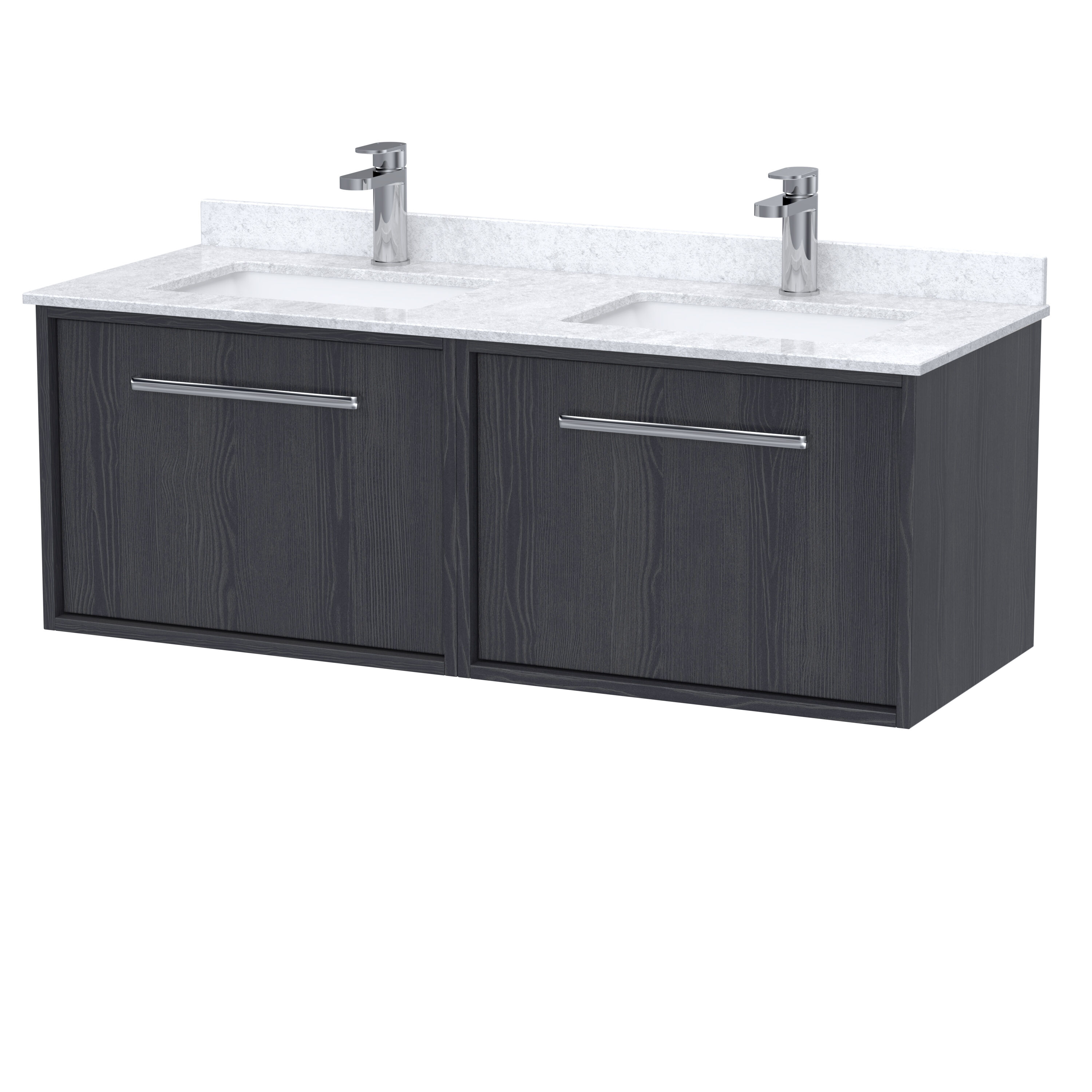 nuie Lux Roseburn 1200mm Wall Hung 2 Drawer Unit and Marble Top Basin - Graphite Grey Woodgrain