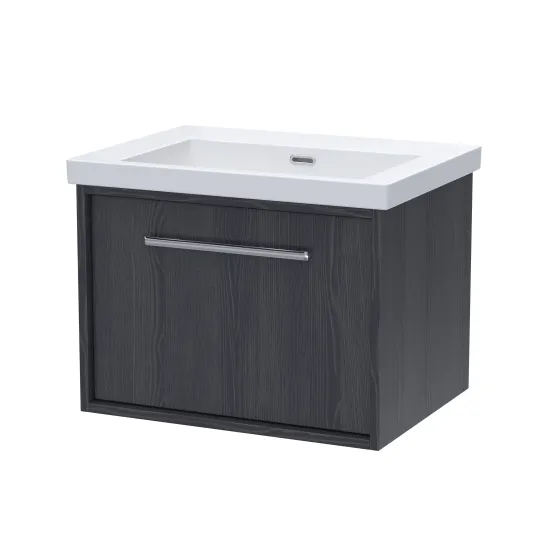 nuie Lux Roseburn 600mm Wall Hung 1 Drawer Unit and 0 Tap Hole Contemporary Basin - Graphite Grey Woodgrain