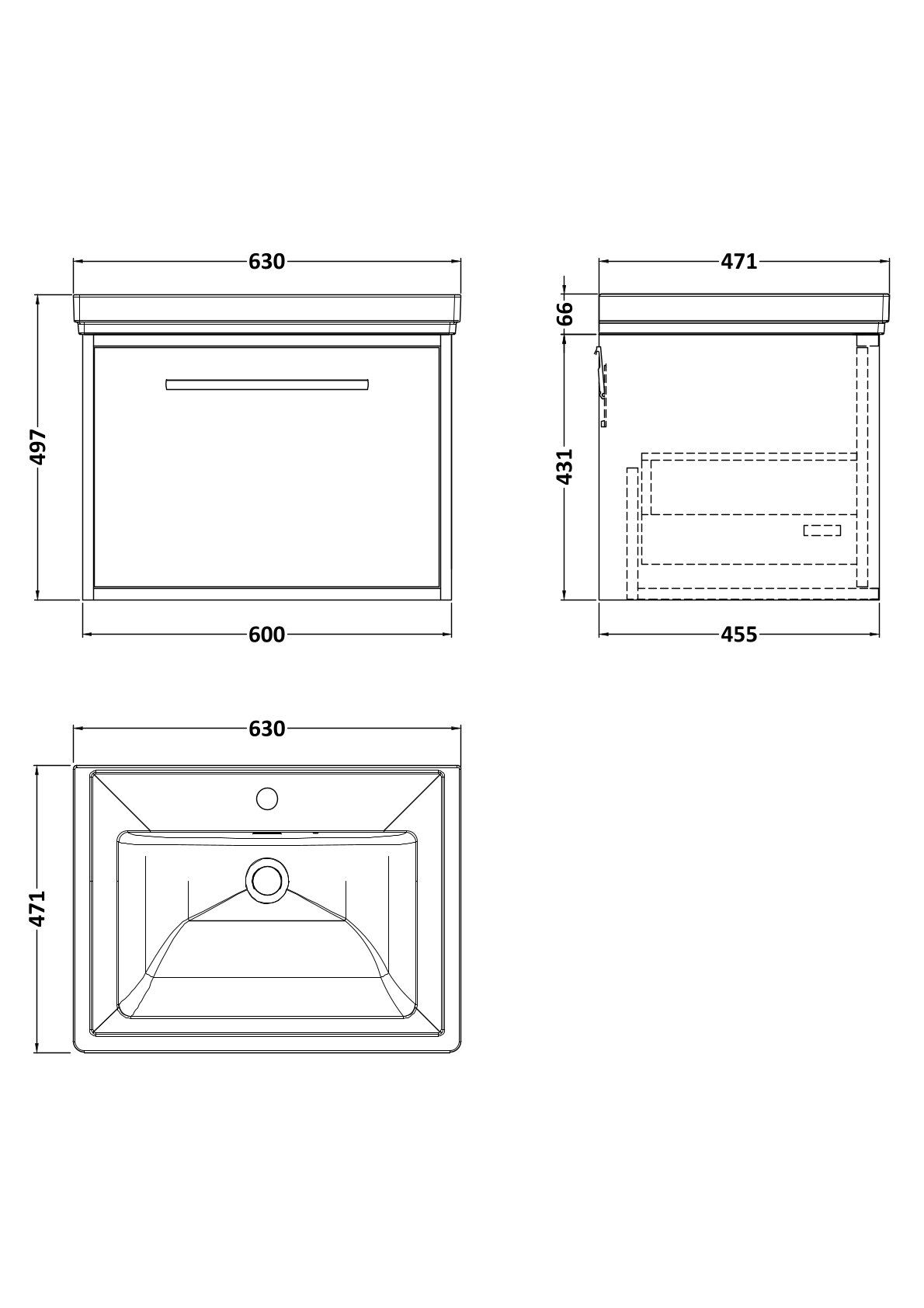 nuie Lux Roseburn 600mm Wall Hung 1 Drawer Unit and 1 Tap Hole Classic Basin - Autumn Oak