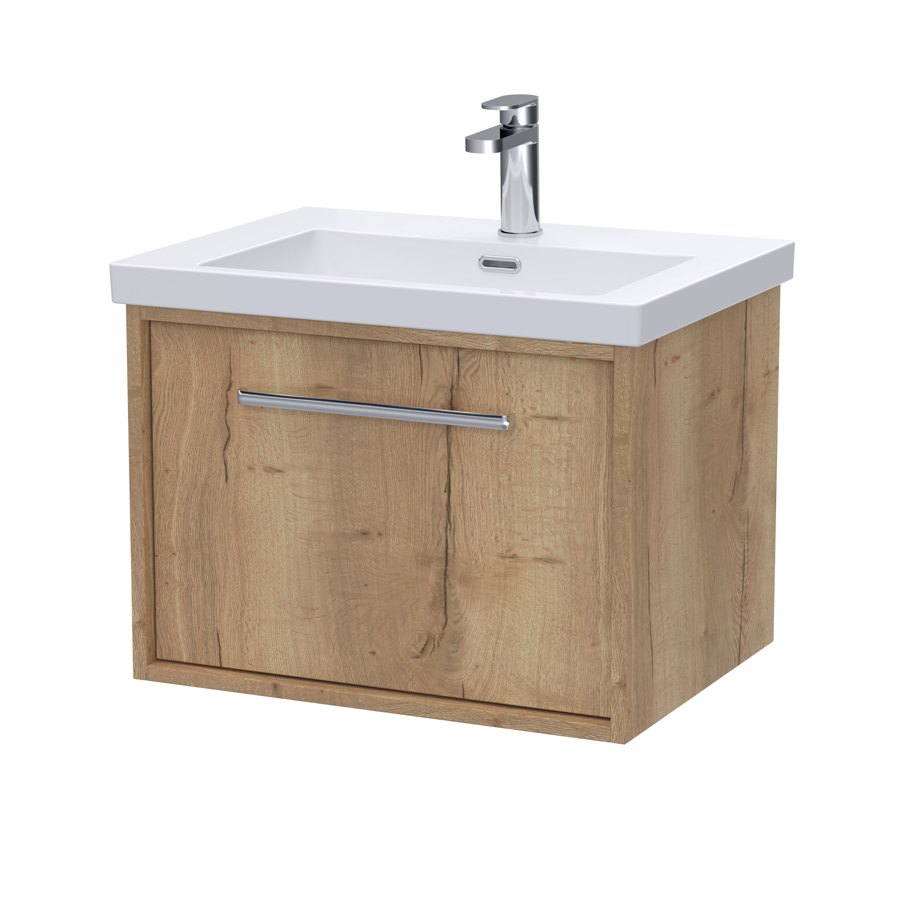 nuie Lux Roseburn 600mm Wall Hung 1 Drawer Unit and 1 Tap Hole Contemporary Basin - Autumn Oak