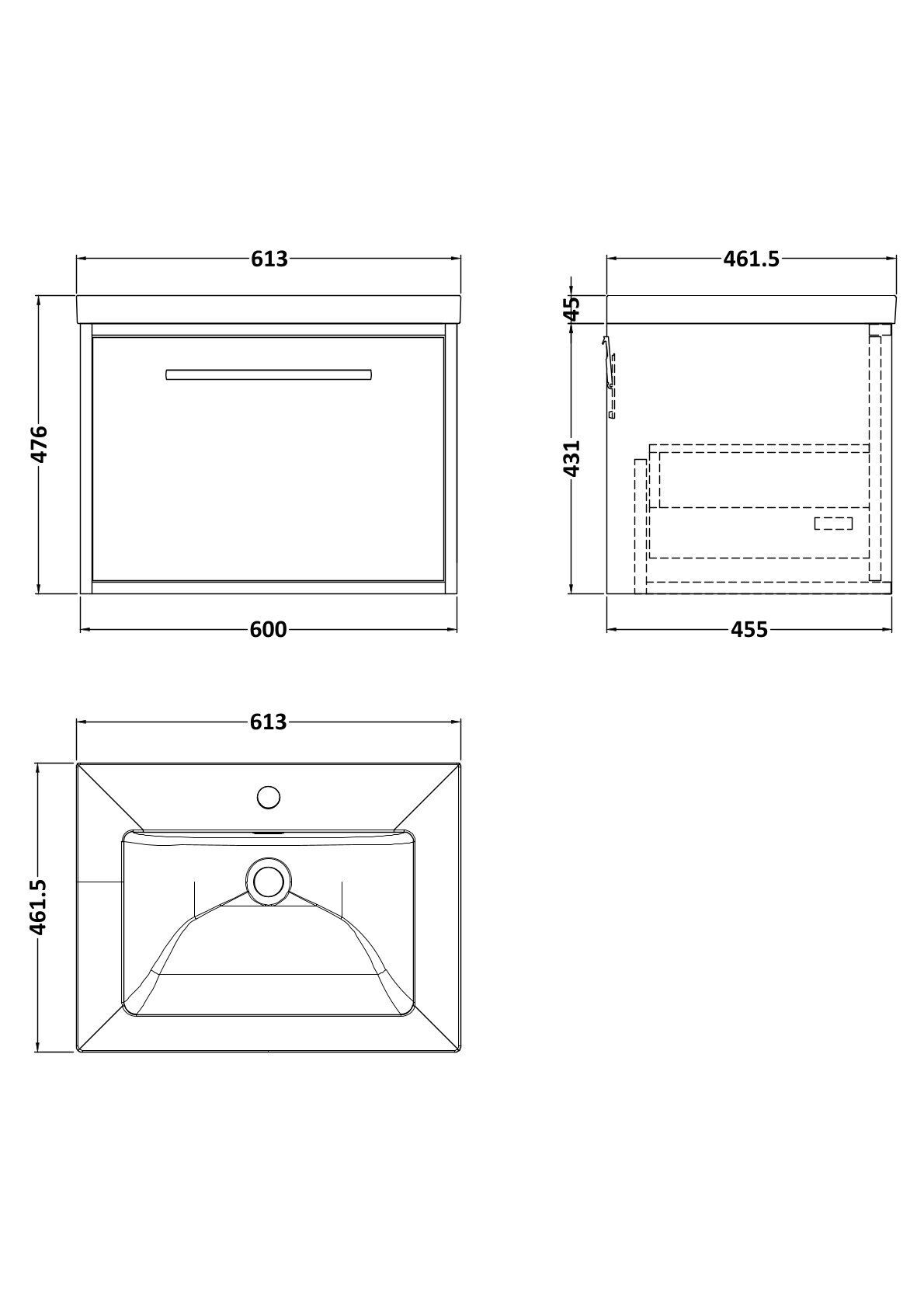 BC Designs Roseburn 600mm Wall Hung 1 Drawer Unit and 1 Tap Hole Contemporary Basin - Metallic Slate