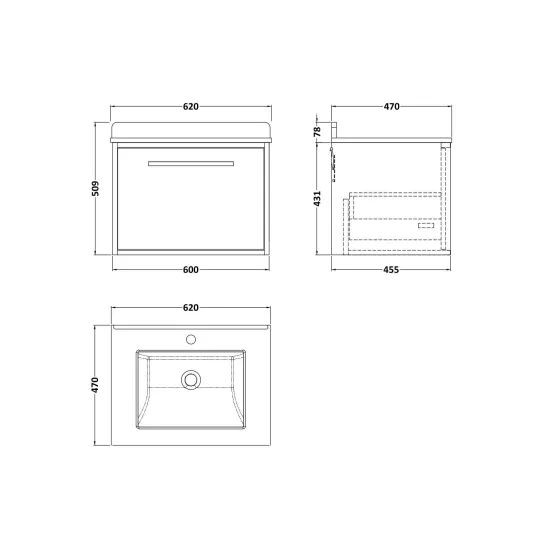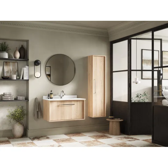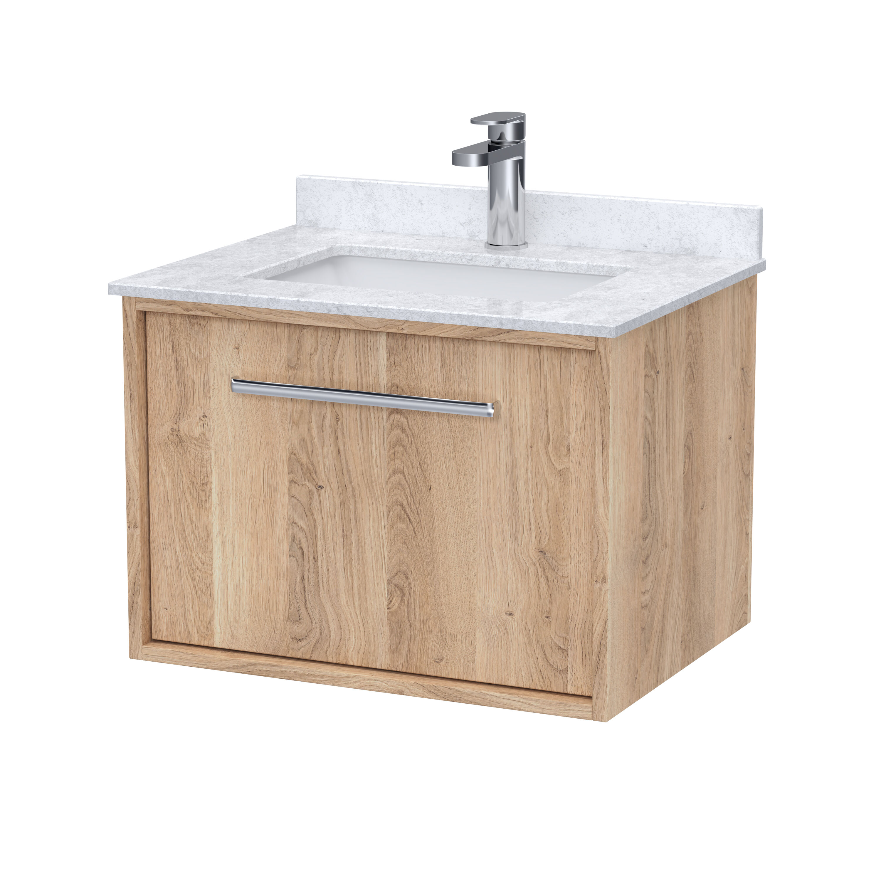 nuie Lux Roseburn 600mm Wall Hung 1 Drawer Unit and Marble Top Basin - Bleached Oak