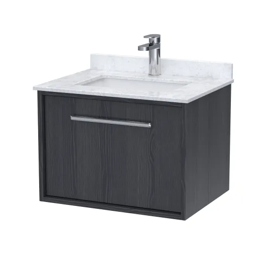 nuie Lux Roseburn 600mm Wall Hung 1 Drawer Unit and Marble Top Basin - Graphite Grey Woodgrain