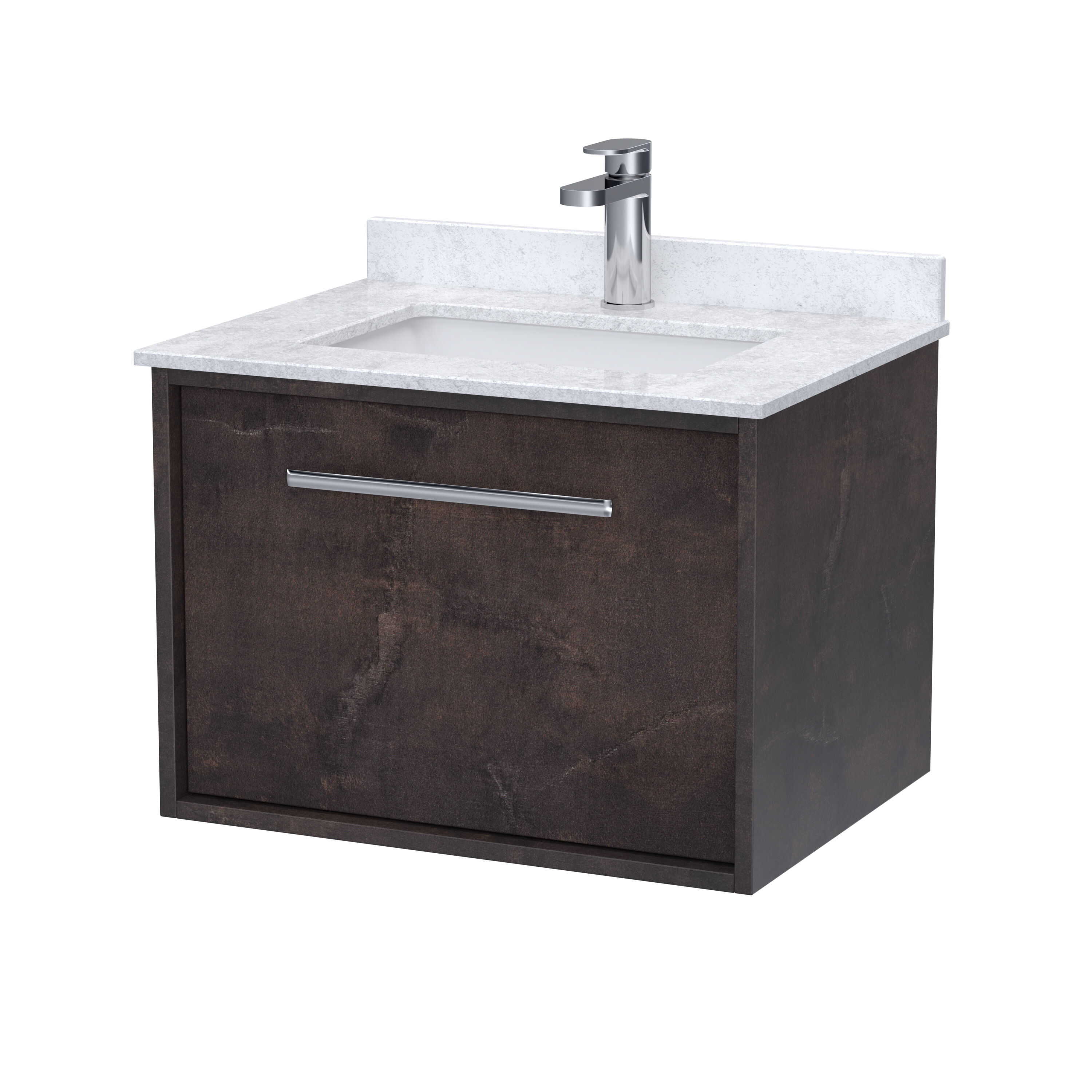 BC Designs Roseburn 600mm Wall Hung 1 Drawer Unit and Marble Top Basin - Metallic Slate