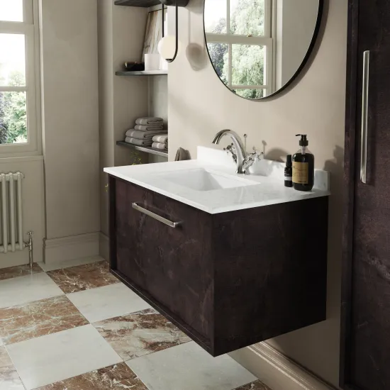 BC Designs Roseburn 600mm Metallic Slate Wall Hung 1 Drawer Unit and Marble Top Basin