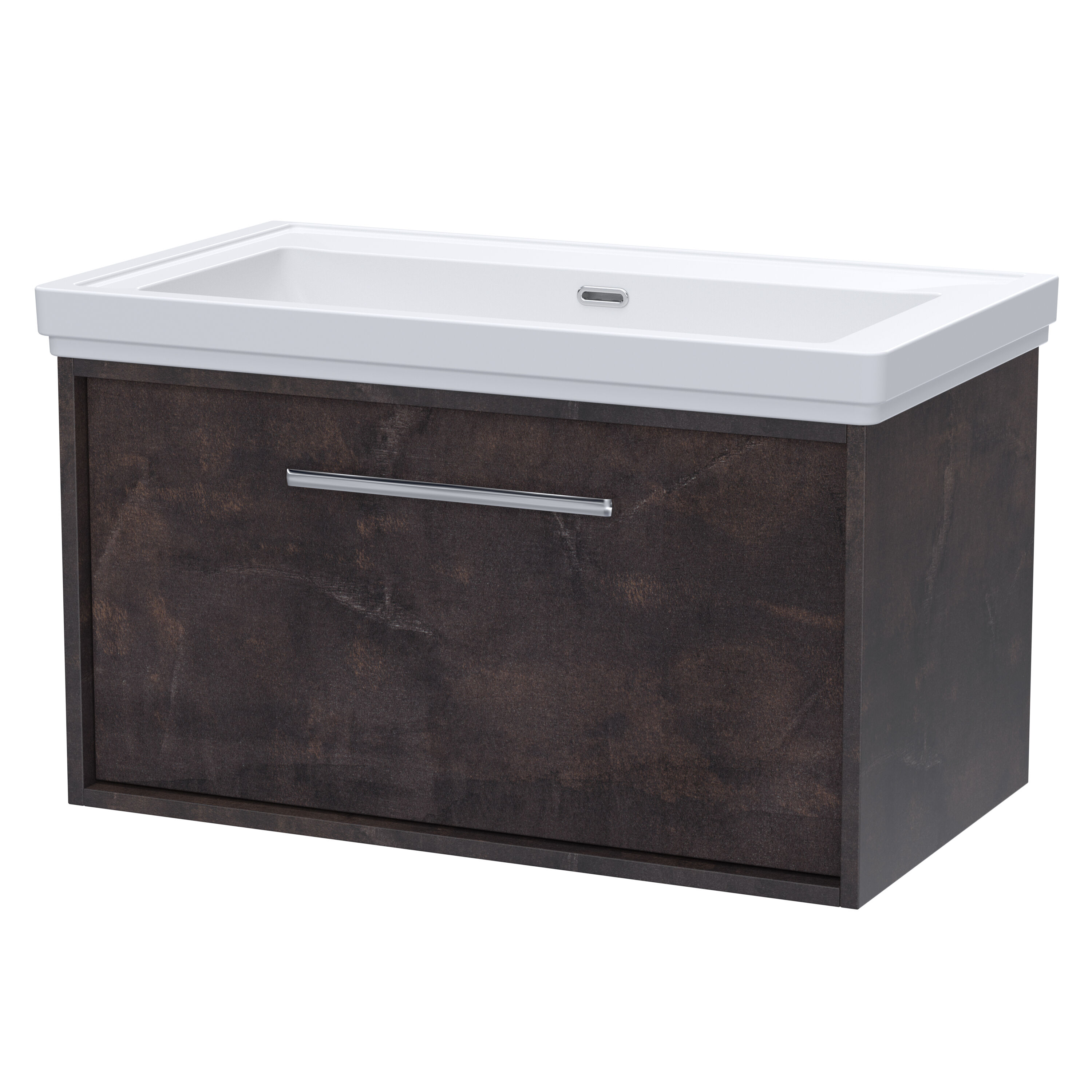 BC Designs Roseburn 800mm Metallic Slate Wall Hung 1 Drawer Vanity Unit with 0 Tap Hole Basin