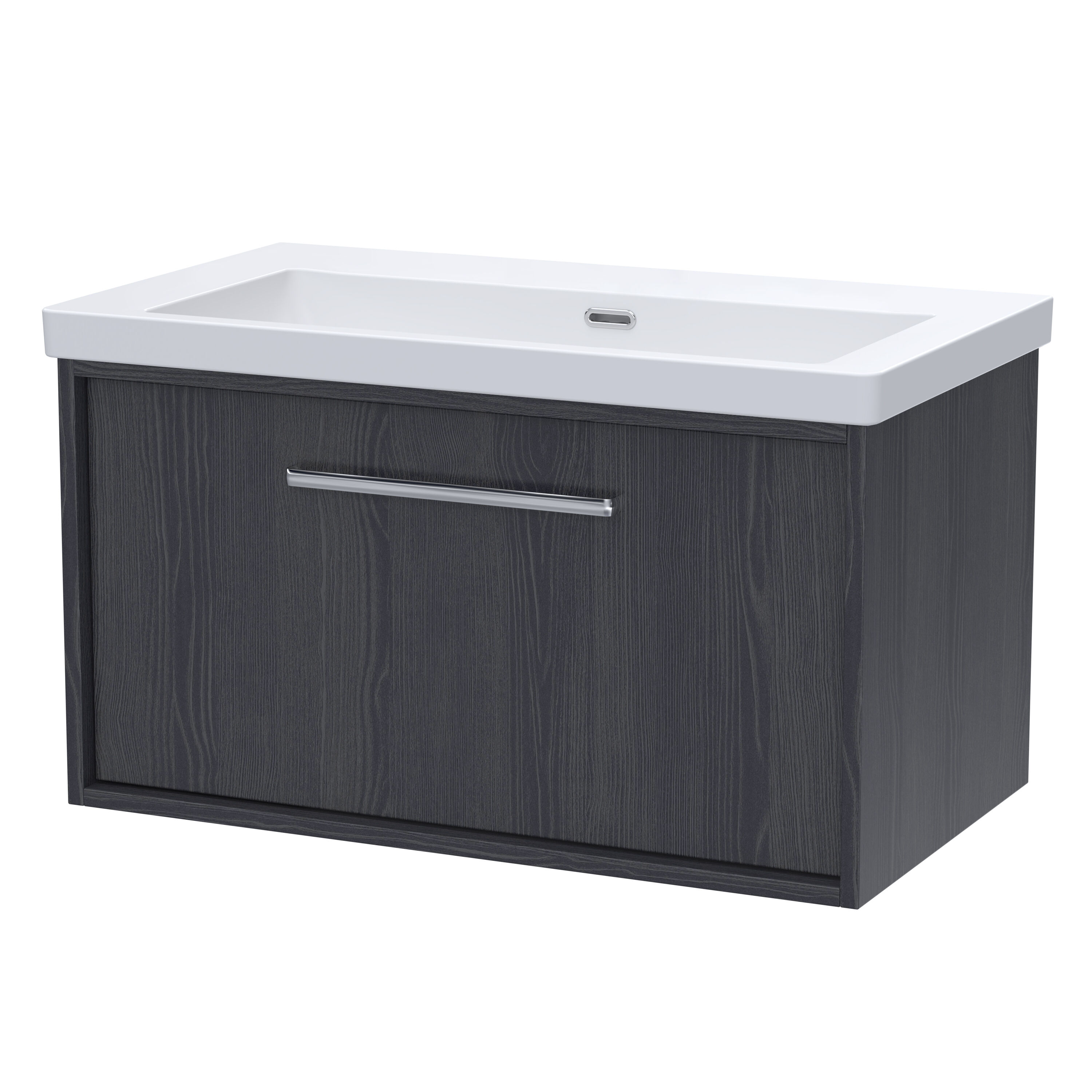nuie Lux Roseburn 800mm Wall Hung 1 Drawer Unit and 0 Tap Hole Contemporary Basin - Graphite Grey Woodgrain