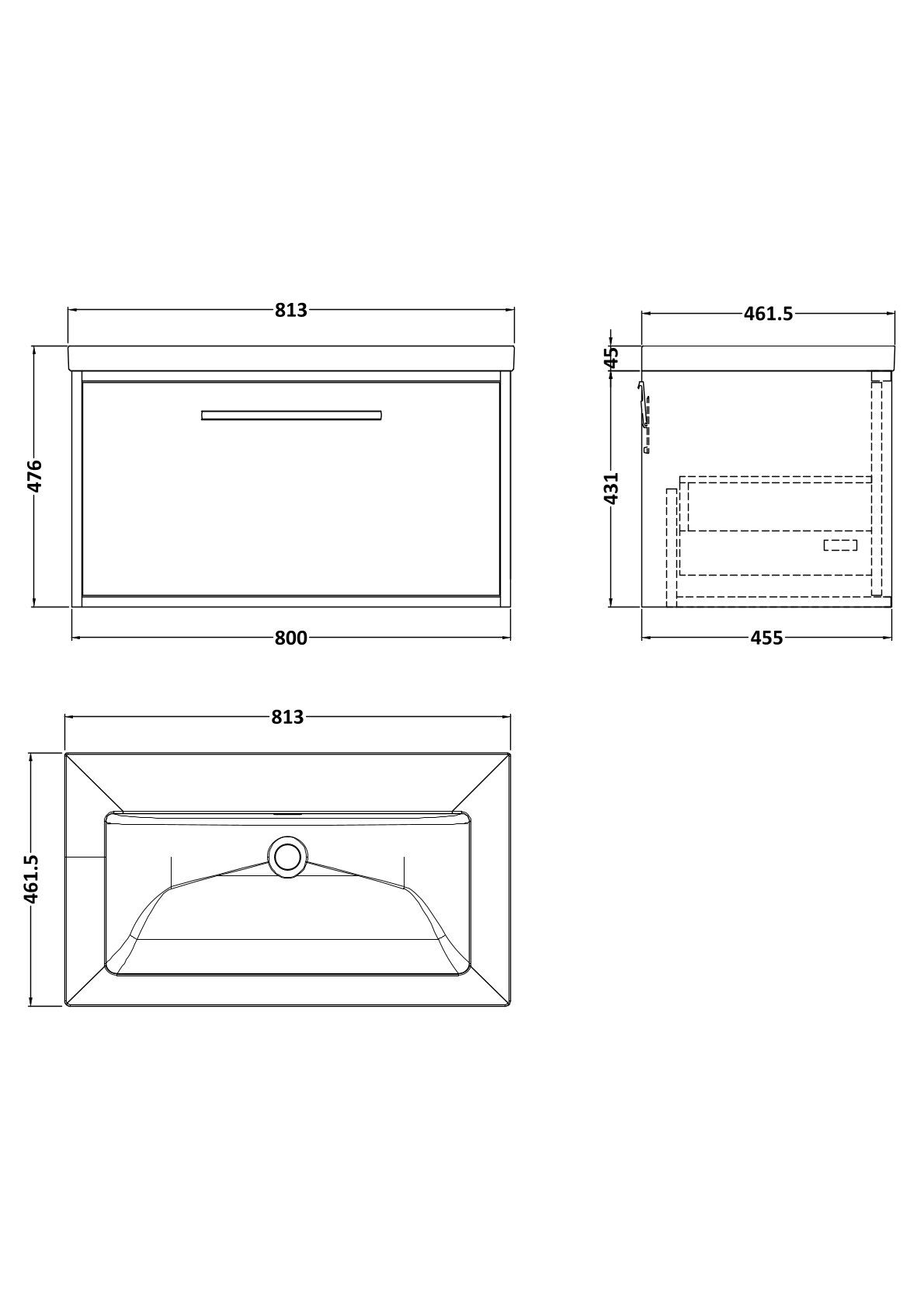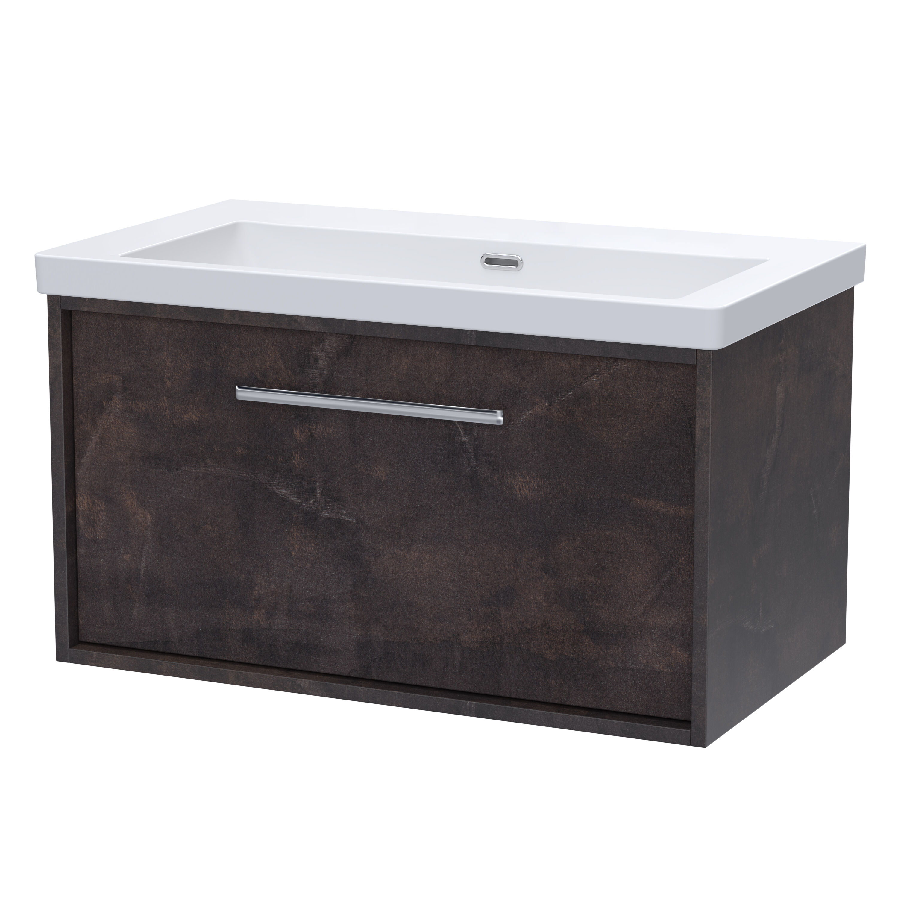 BC Designs Roseburn 800mm Metallic Slate Wall Hung 1 Drawer Unit & 0 Tap Hole Basin With Overflow