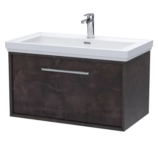 BC Designs Roseburn 800mm Metallic Slate Wall Hung 1 Drawer Unit with 1 Tap Hole Basin & Soft Close
