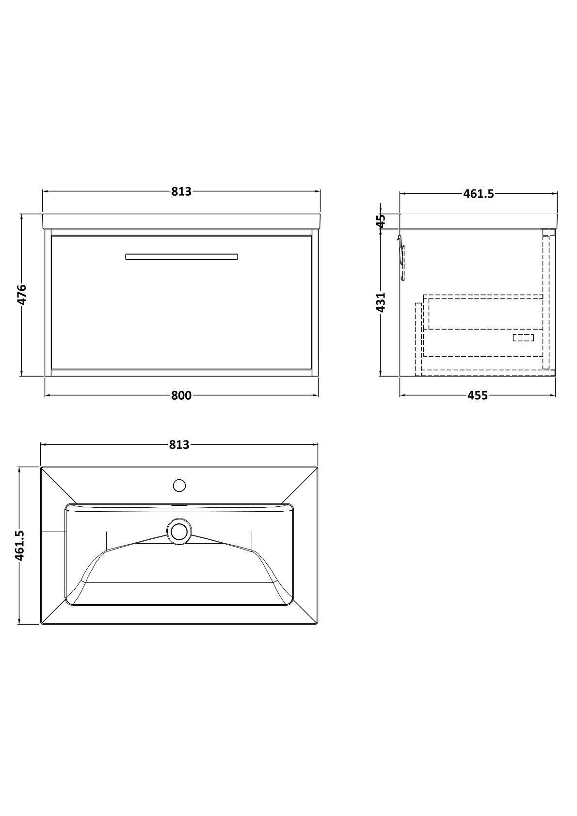 nuie Lux Roseburn 800mm Wall Hung 1 Drawer Unit and 1 Tap Hole Contemporary Basin - Autumn Oak