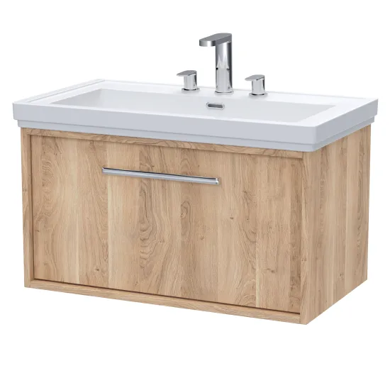nuie Lux Roseburn 800mm Wall Hung 1 Drawer Unit and 3 Tap Hole Classic Basin - Bleached Oak