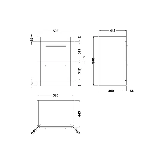 Hudson Reed Solar 600mm Floor Standing 2-Drawer Unit - Fern Green