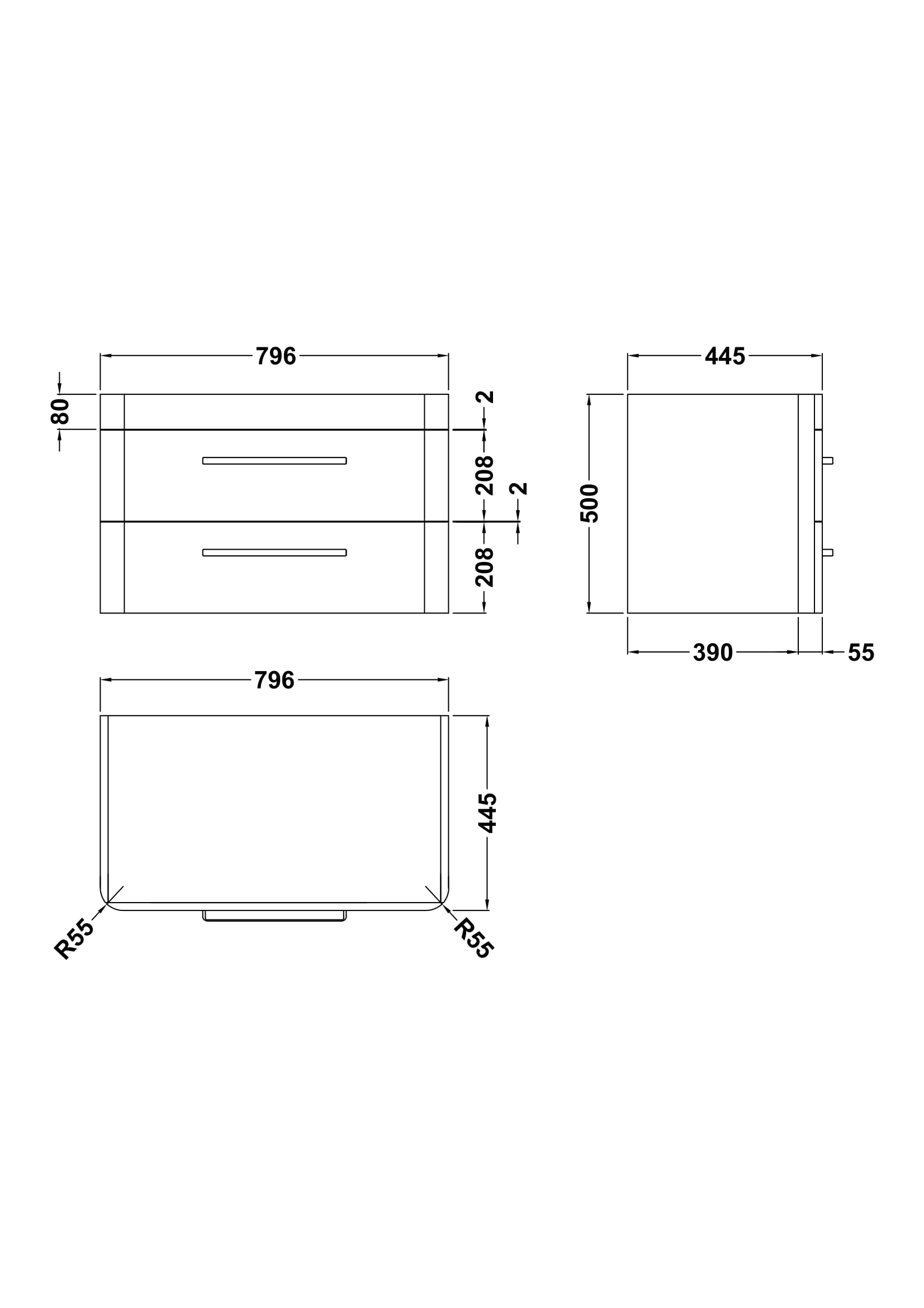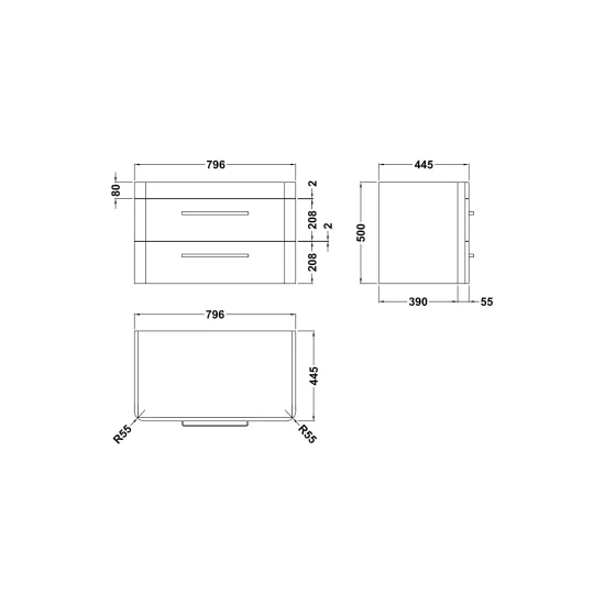Solar 800mm Wall Hung 2-Drawer Unit