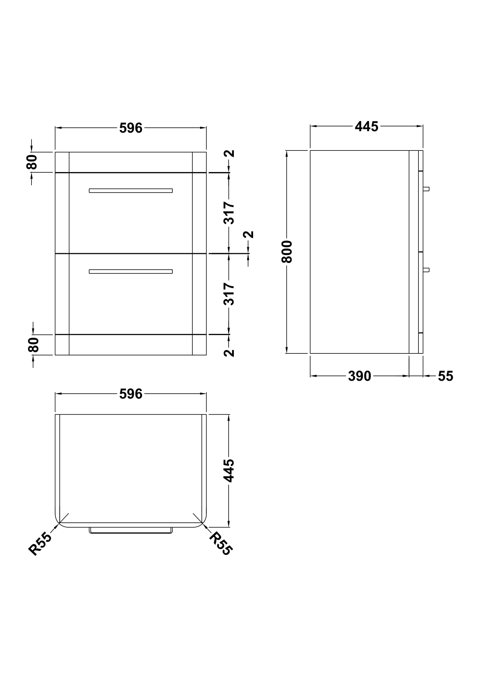 Solar Floor Standing 2 Drawer Vanity Cabinet 600mm