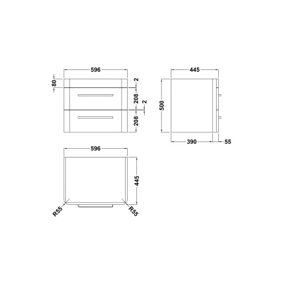Solar Wall Hung 2 Drawer Vanity Cabinet 600mm