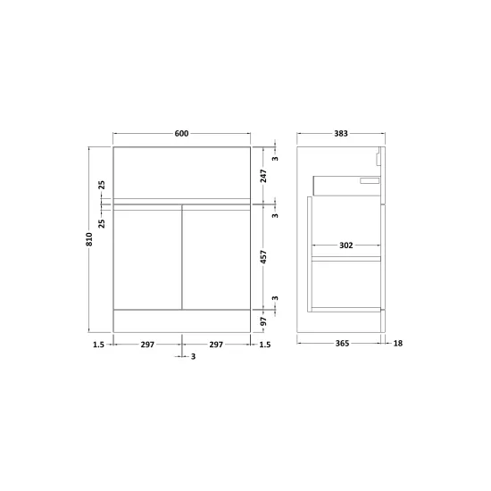 Urban Floor Standing 2 Door 1 Drawer Vanity Unit 600mm