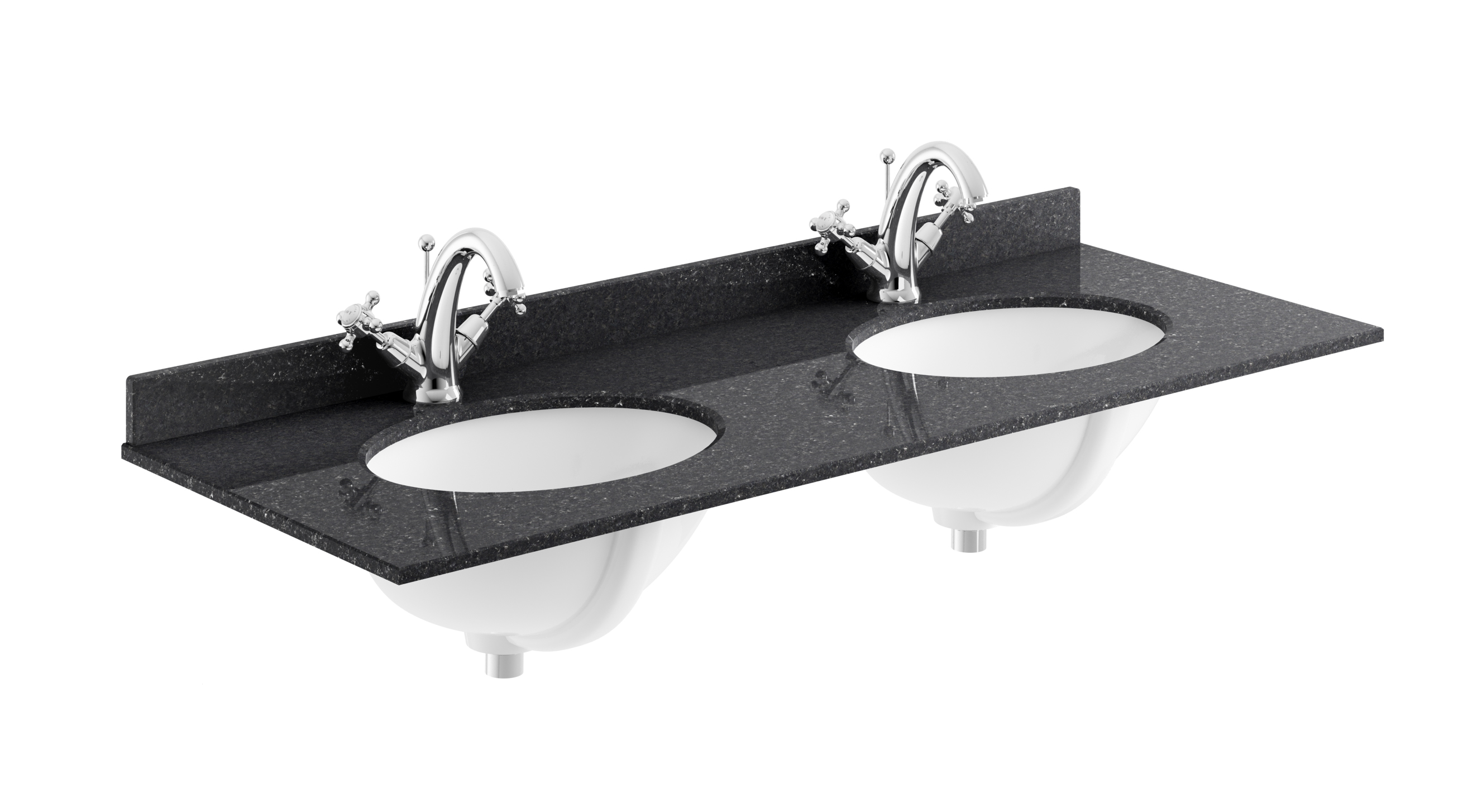 nuie Double Bowl Marble Top 1 Tap Hole 1220mm - Black