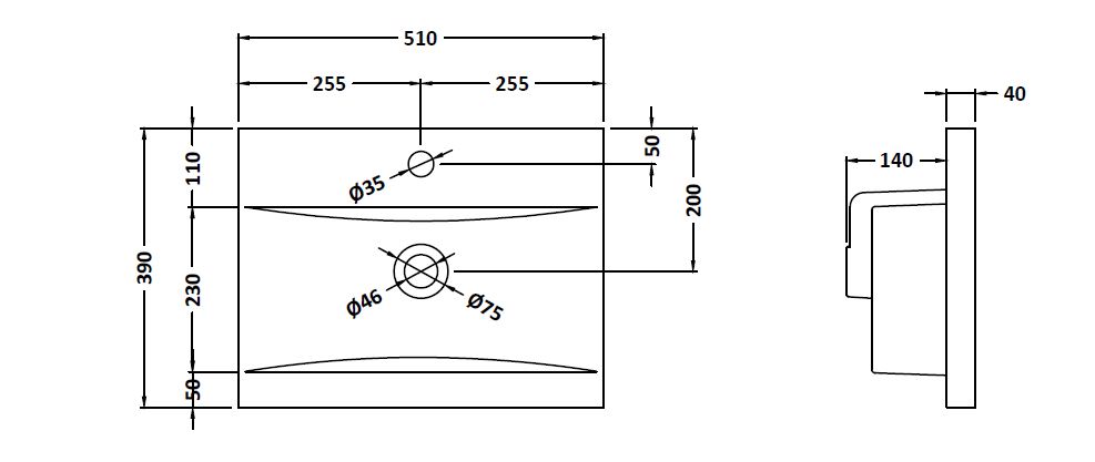 Furniture Mid-Edge Ceramic Basin 1 Tap Hole 510mm