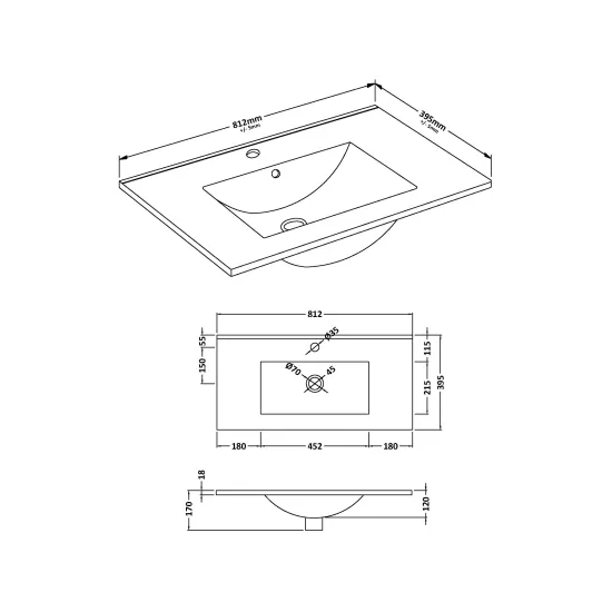 Furniture Minimalist Slimline Ceramic Basin 1 Tap Hole 800mm