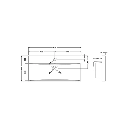 Furniture Thin-Edge Ceramic Basin 1 Tap Hole 810mm