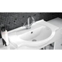 Nuie Saturn 1063mm Gloss White Floor Standing Cloakroom Furniture Pack with Basin, Pan & Soft Close Seat