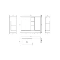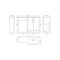 Nuie Arno 1100mm Right Hand Charcoal Black Floor Standing Combination Unit With Basin