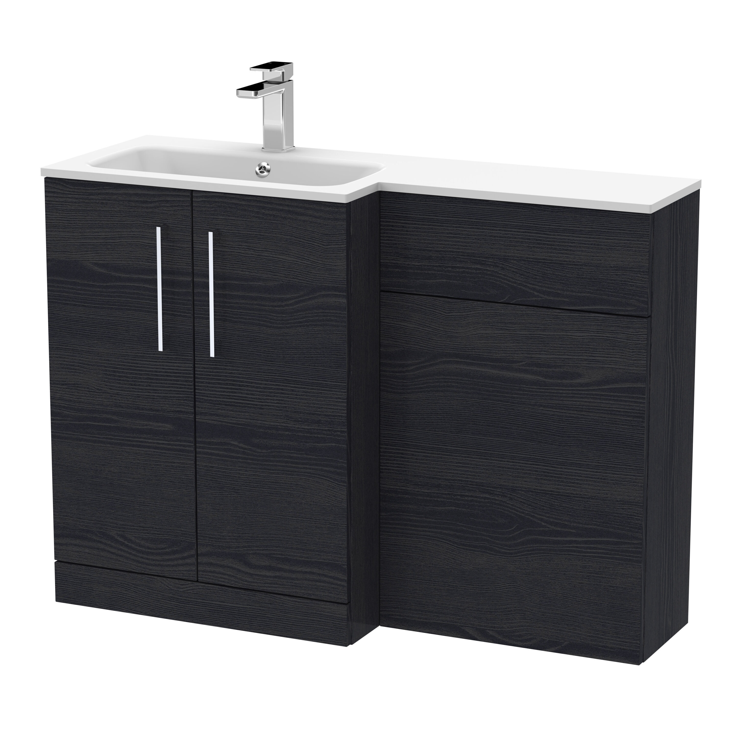 Nuie Arno 1100mm Left Hand Charcoal Black Woodgrain Combination Vanity Unit With Basin & Handles