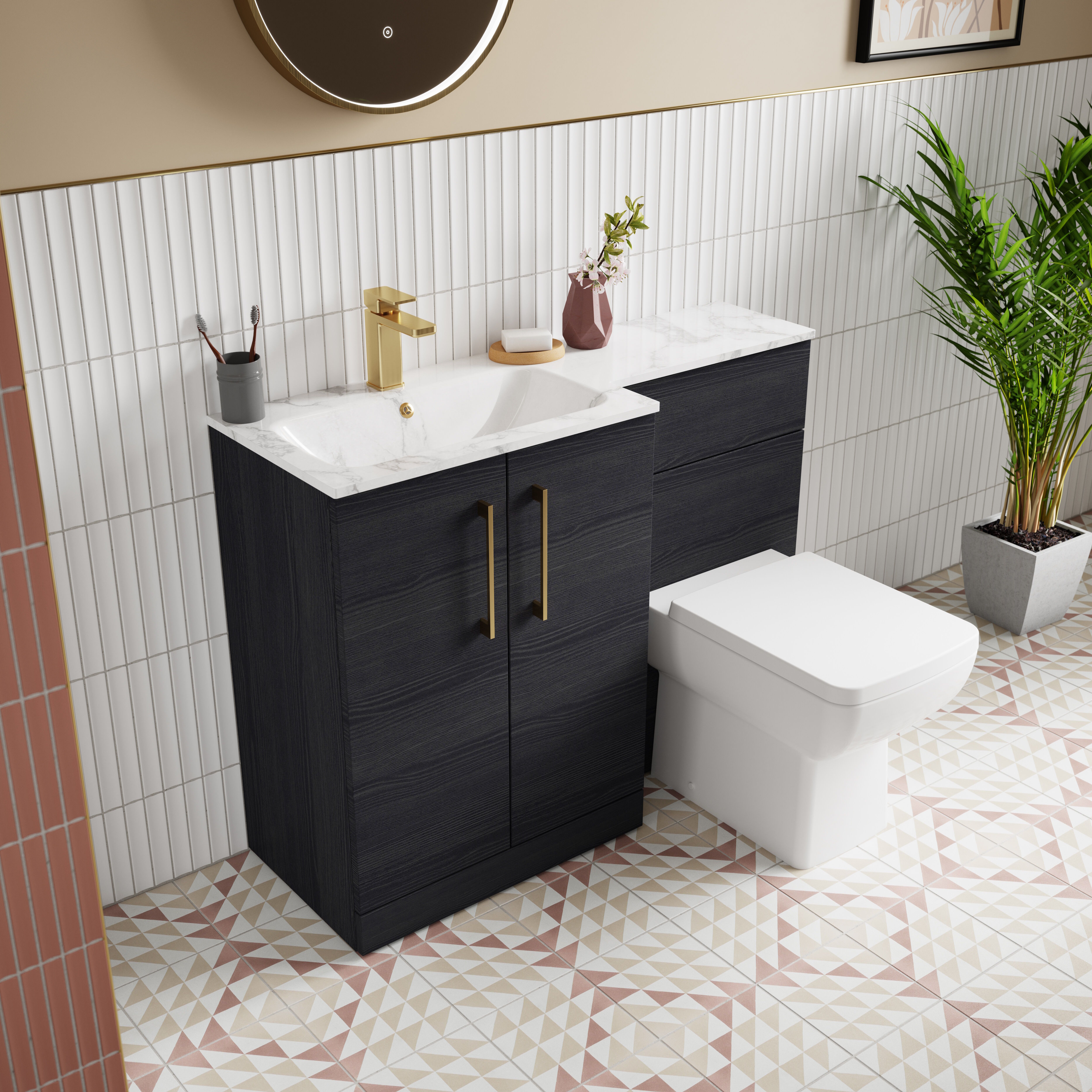 Nuie Arno 1100mm Left Hand Charcoal Black Woodgrain Combination Unit With Handles