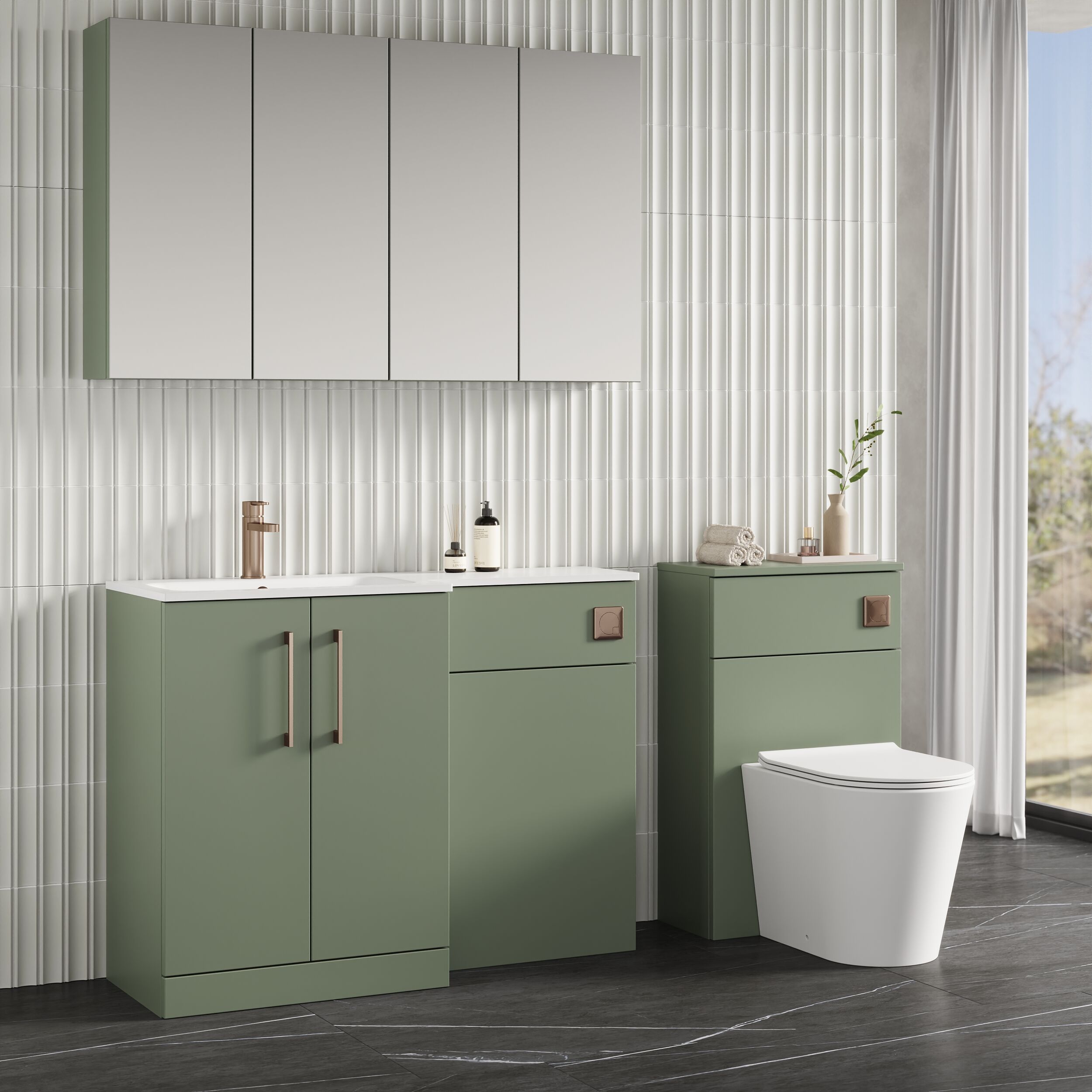 Nuie Arno 1100mm Left Hand Satin Green Combination Unit With Basin