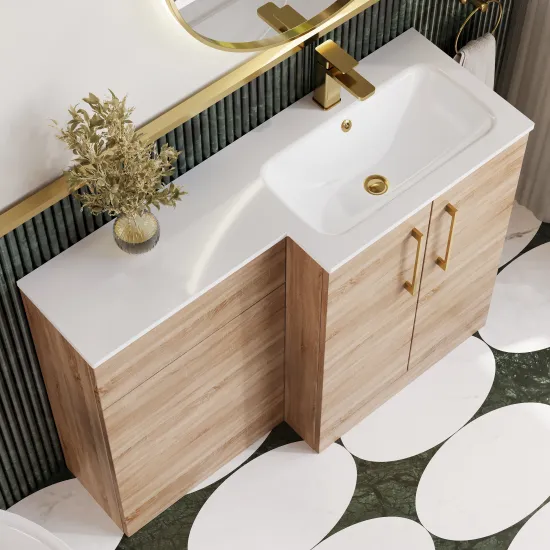 Nuie Arno 1100mm Right Hand Bleached Oak Floor Standing Vanity Unit with Basin