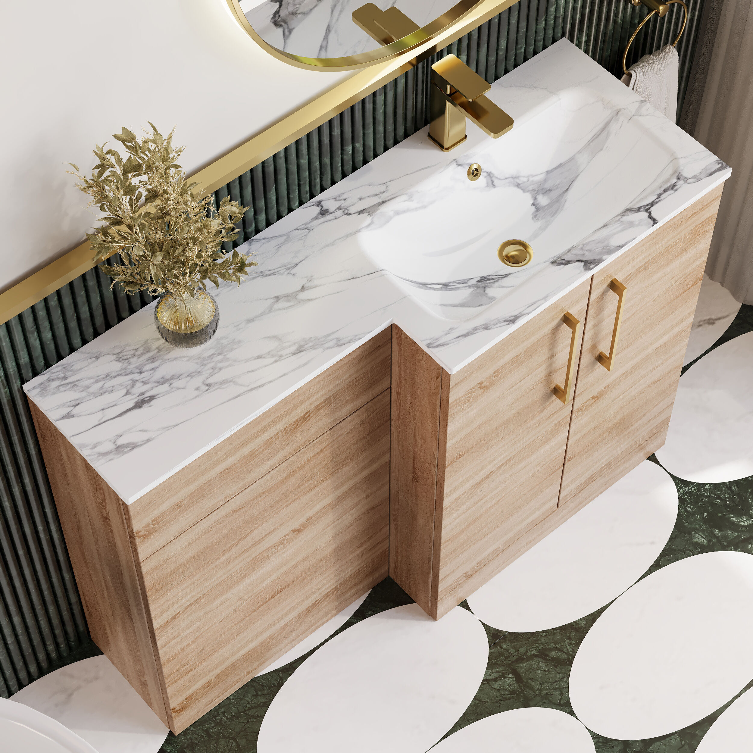 Nuie Arno 1100mm Right Hand Bleached Oak Combination Unit with Stone Basin