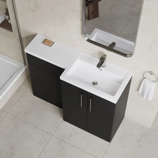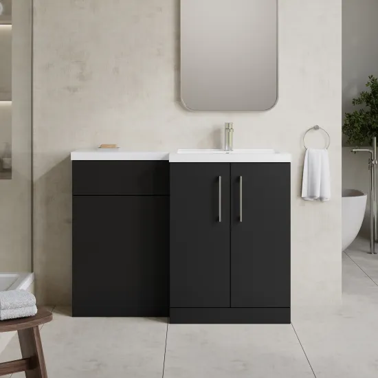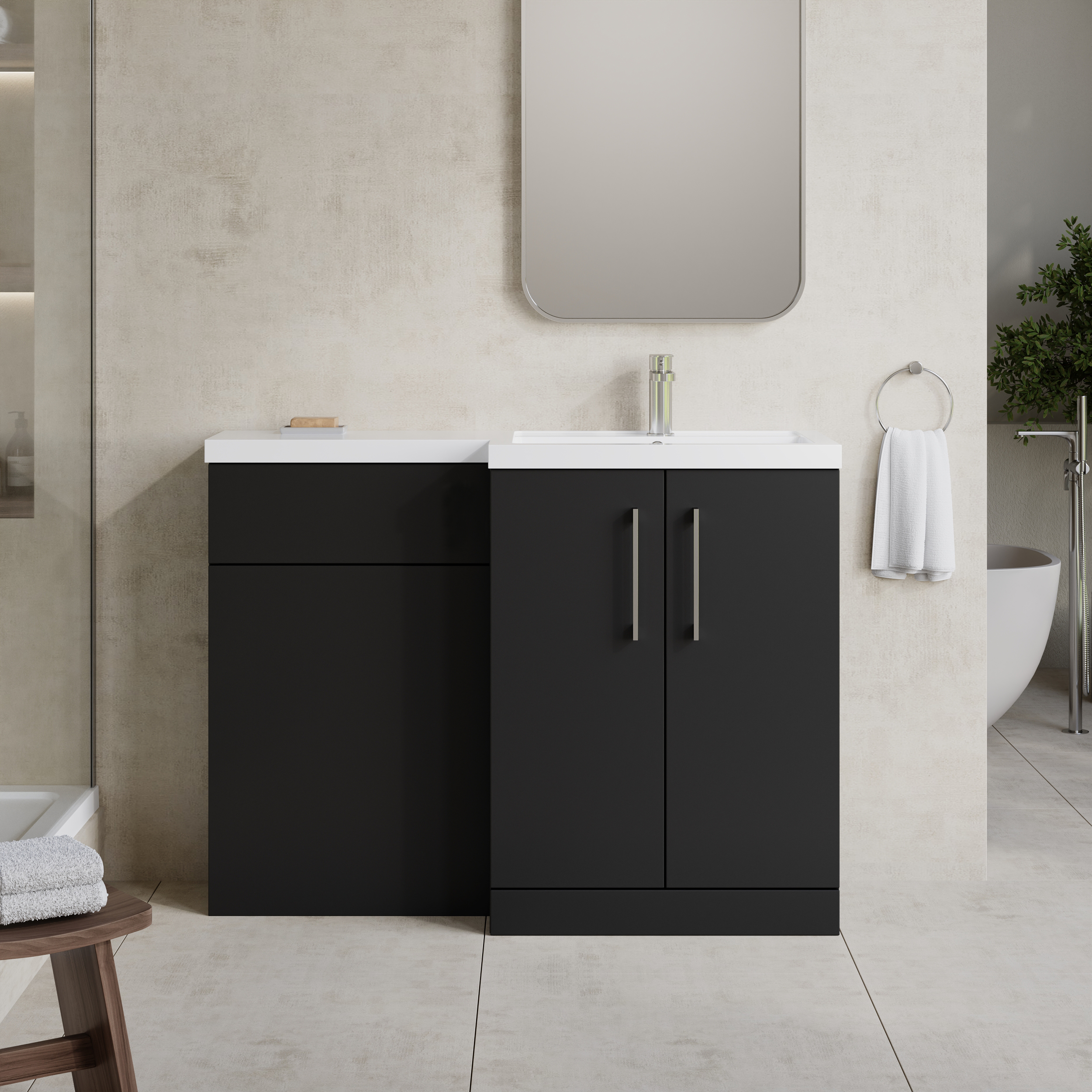 Nuie Arno 1100mm Left Hand Soft Black Floor Standing Vanity Unit with Basin