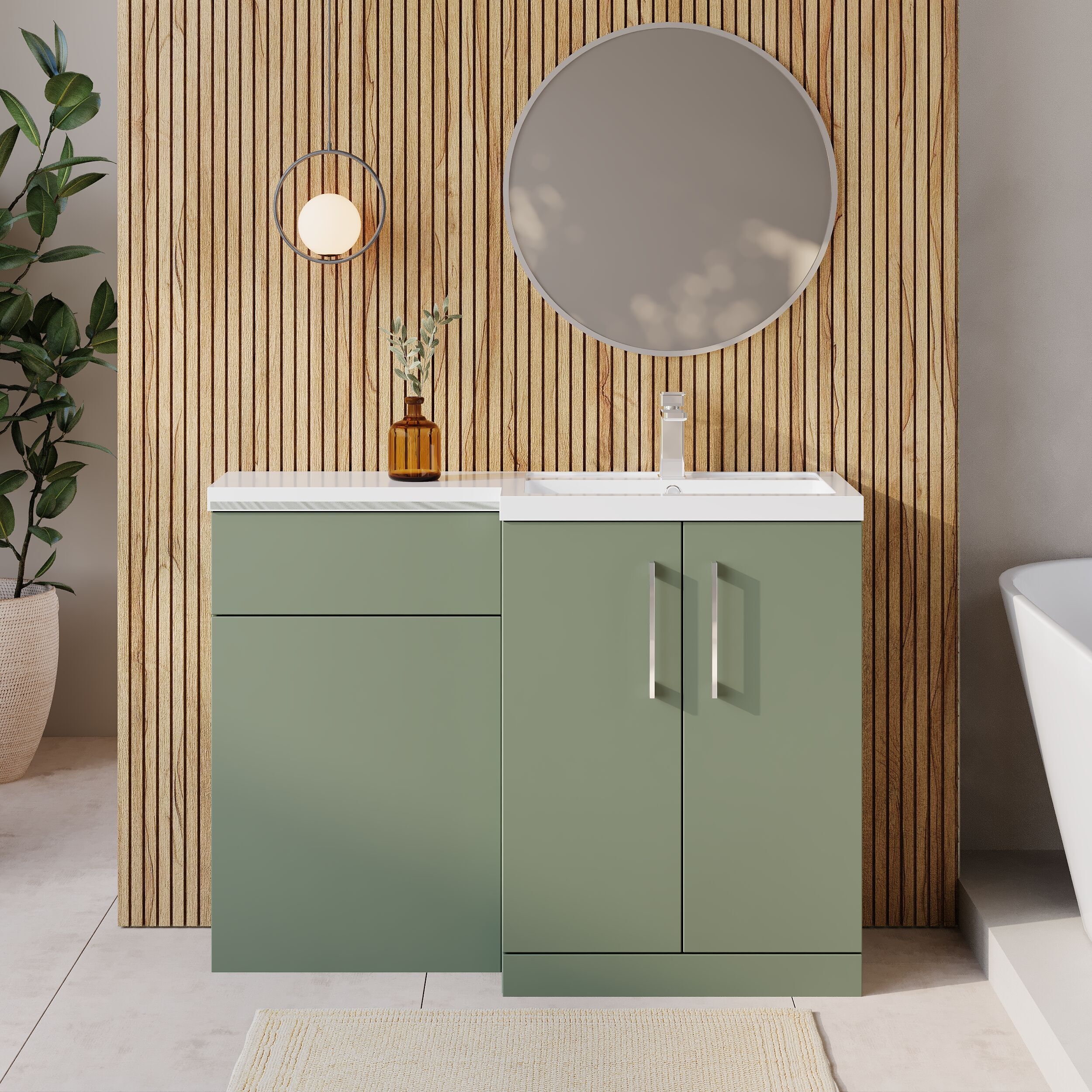 Nuie Arno 1100mm Left Hand Satin Green Combination Unit With Polymarble Basin