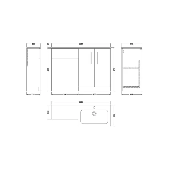 Nuie Arno 1100mm Right Hand Floor Standing Gloss White Combination Unit With Basin