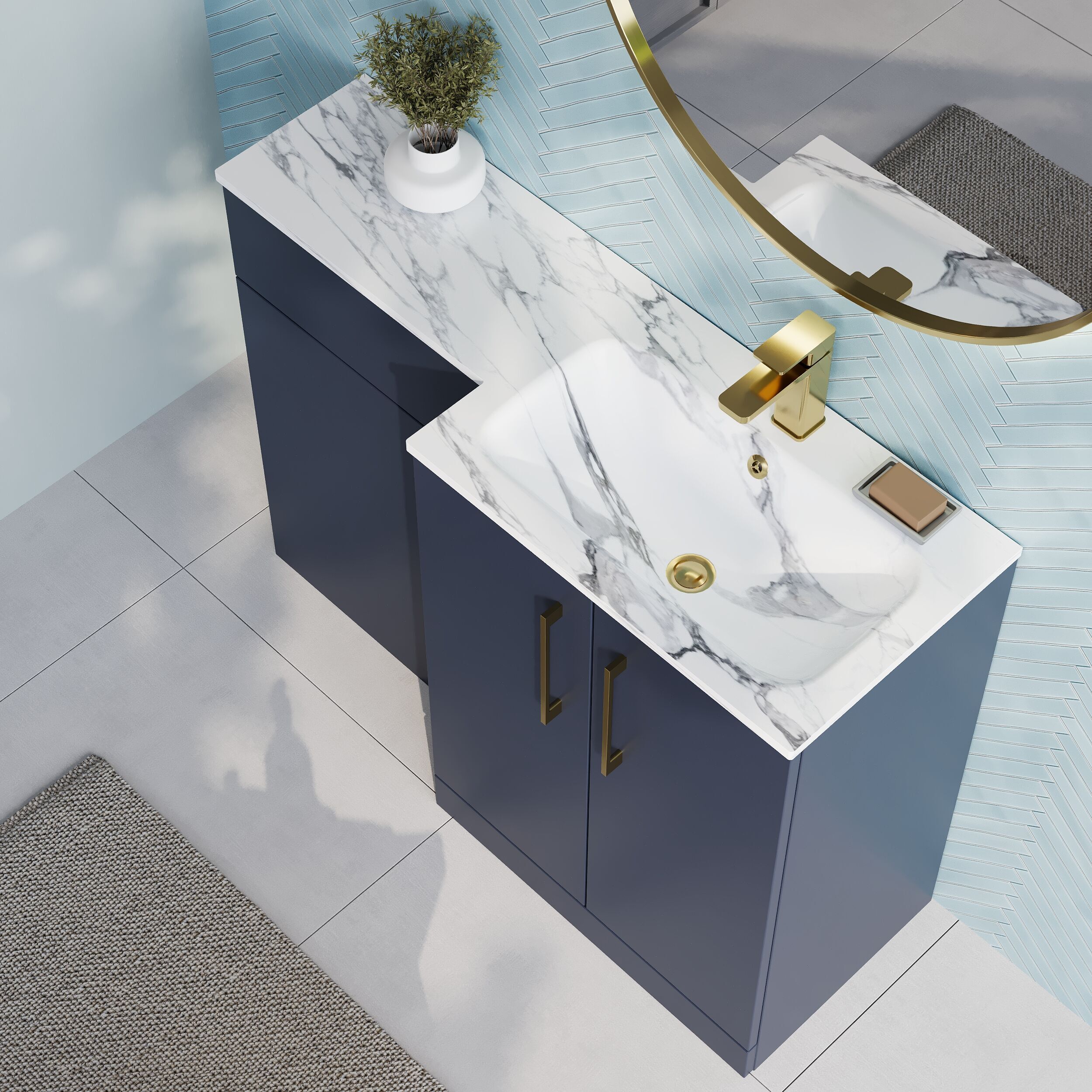 Nuie Arno 1100mm Right Hand Midnight Blue Floor Standing Combination Unit with Basin