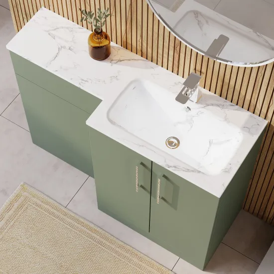 Nuie Arno 1100mm Right Hand Satin Green Combination Unit With Basin