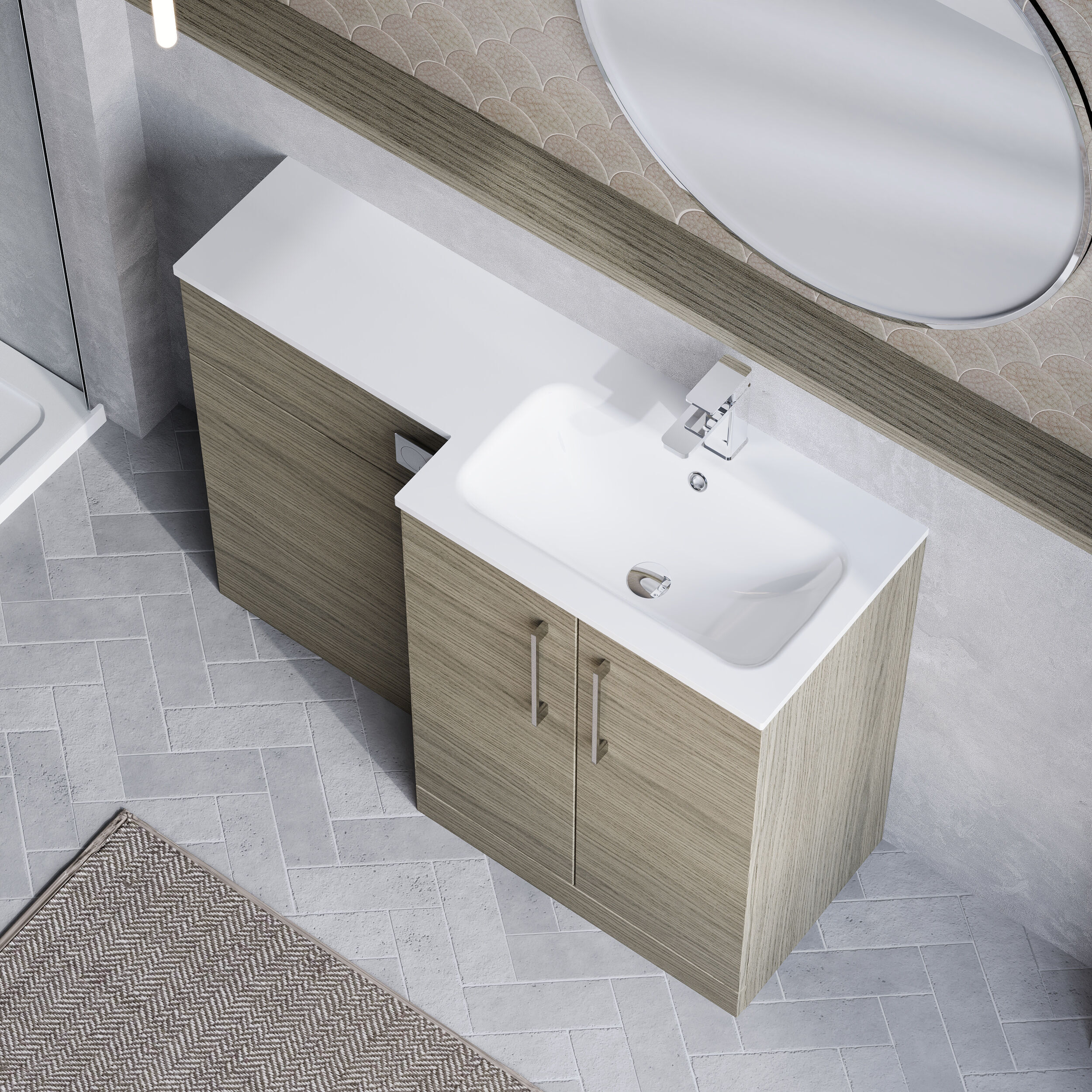 Nuie Arno 1100mm Right Hand Solace Oak Combination Unit Including Basin