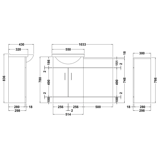 Nuie 500mm Gloss White Floor Standing Vanity Unit with Minimalist Basin 2 Door Soft Close