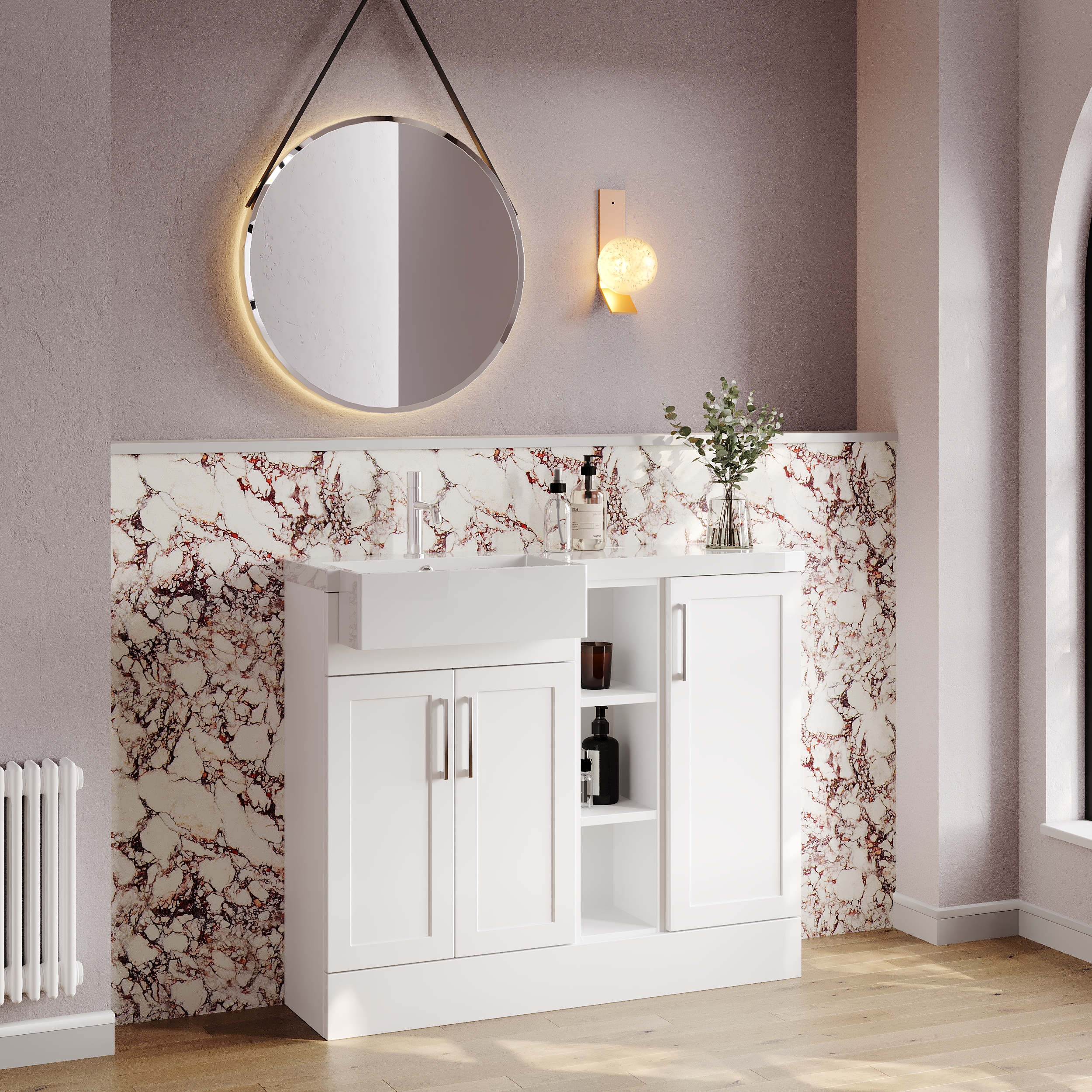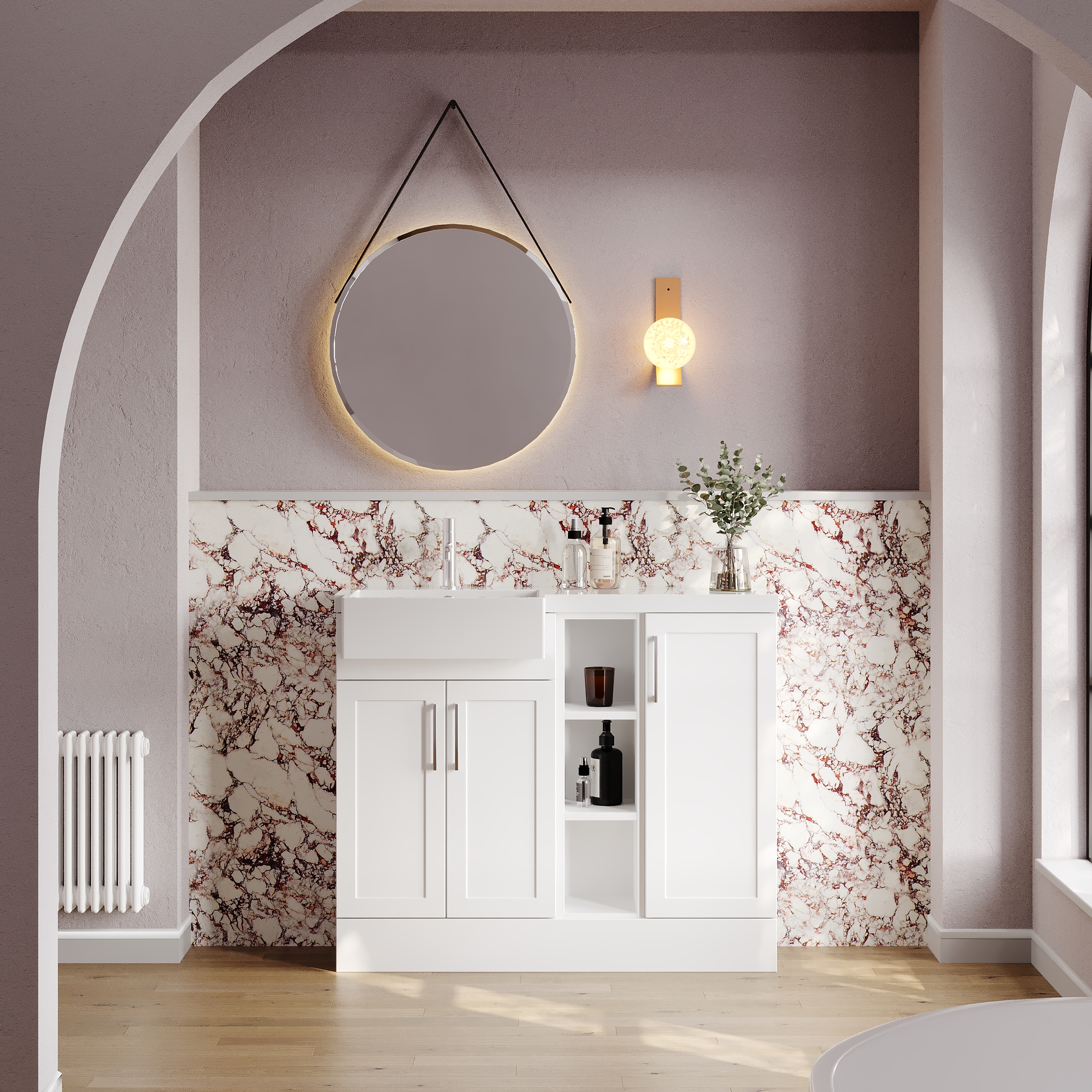 Nuie Lux Fable 1000mm Left Hand Matt White Combination Unit & Basin With Soft Close Doors & Handles