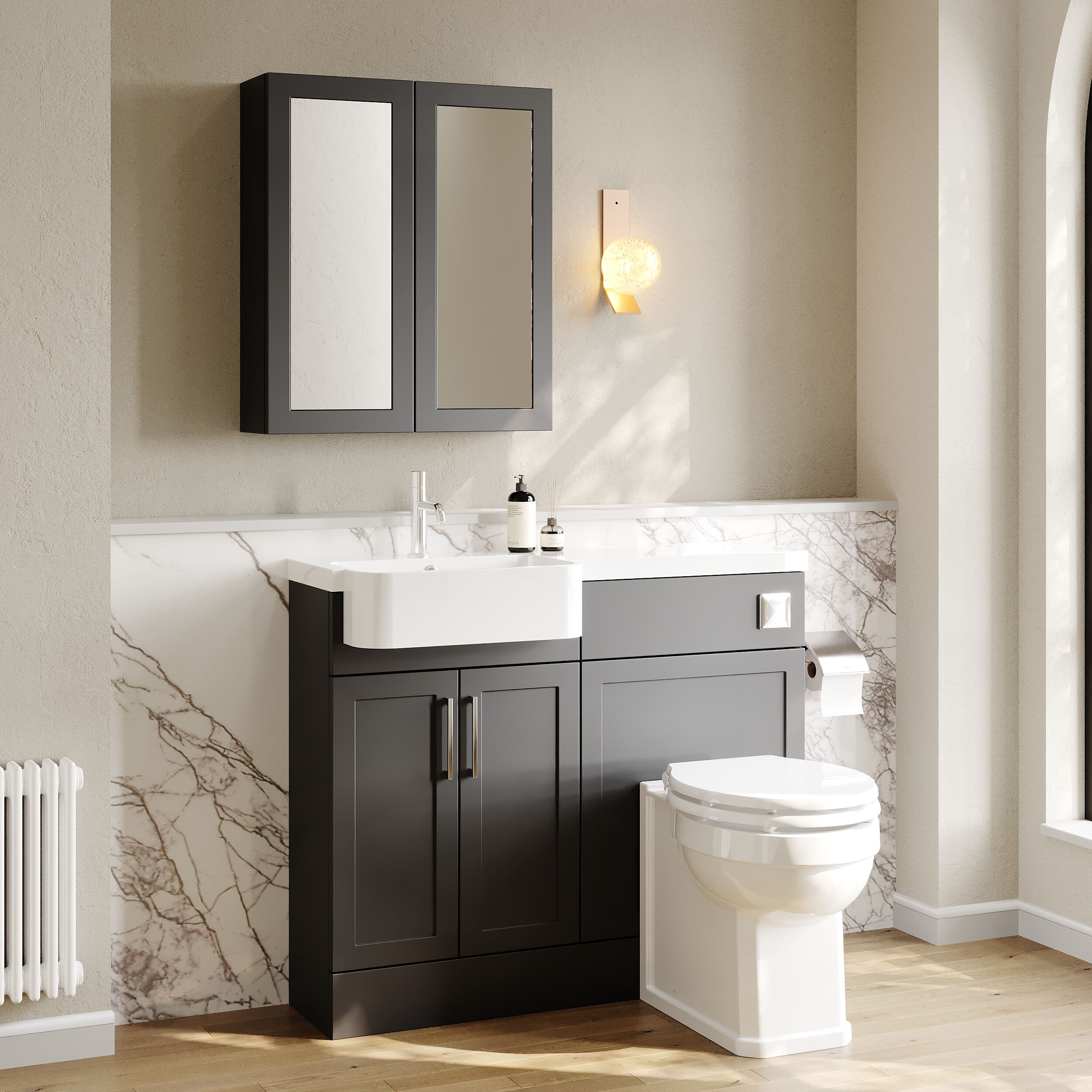 Nuie Lux Fable 1000mm Compact Combination Unit & Basin - Left Hand - Soft Black