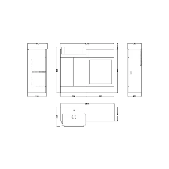 Supplied with luxury polymarble left-hand basin, predrilled with 1 tap hole and high quality handles.