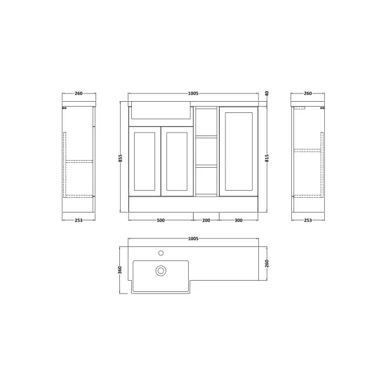 Supplied with luxury polymarble left-hand basin, predrilled with 1 tap hole and high quality handles.