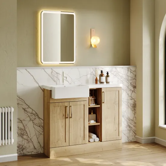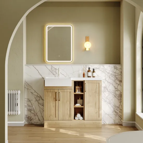 Nuie Lux Fable 1005mm Autumn Oak Left Hand Combination Unit & Basin With Handles