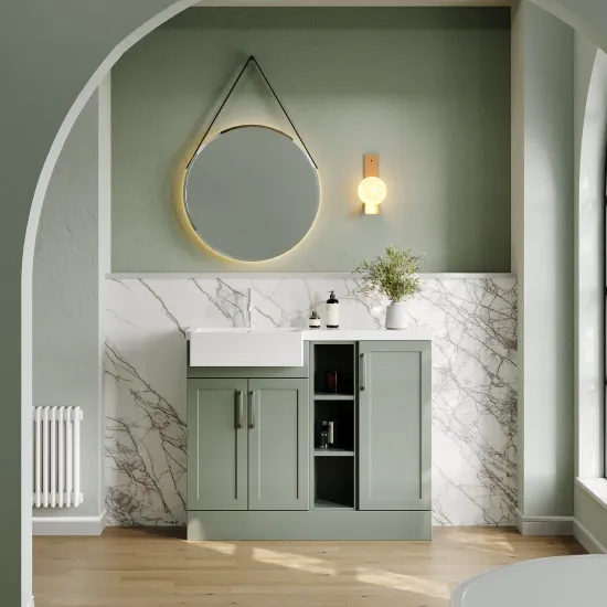 Nuie Lux Fable 1000mm Compact Combination Unit & Basin - Left Hand - Fern Green